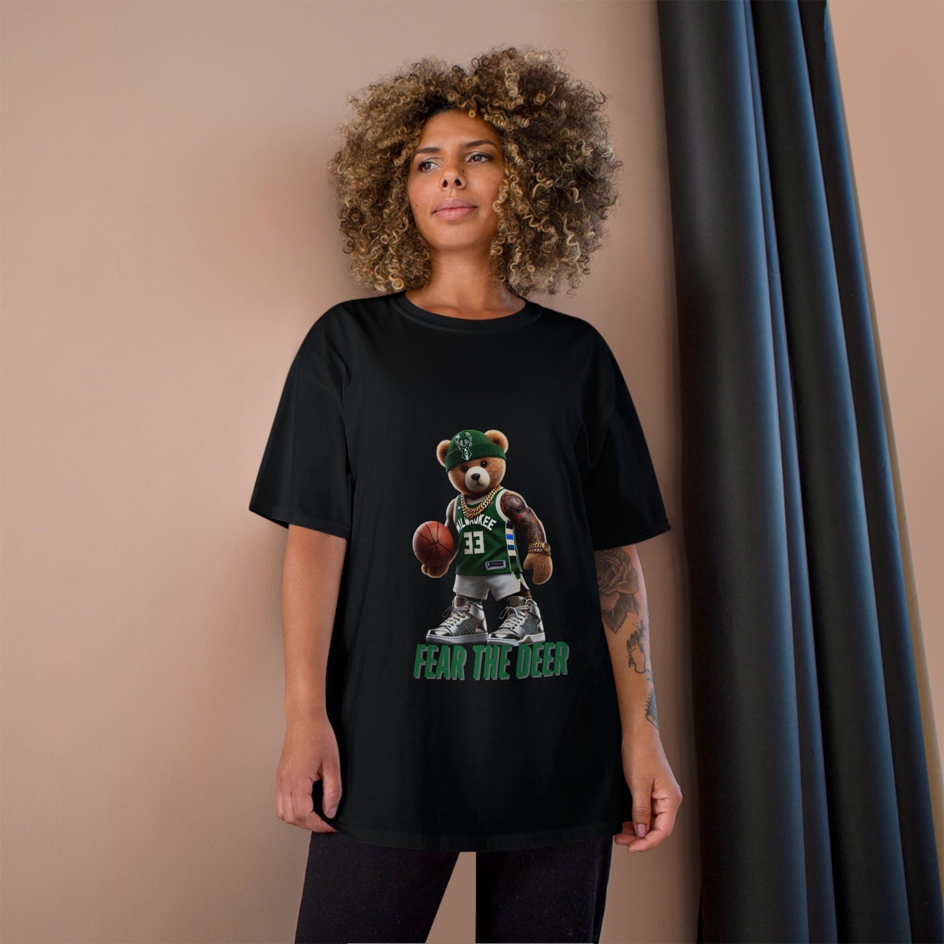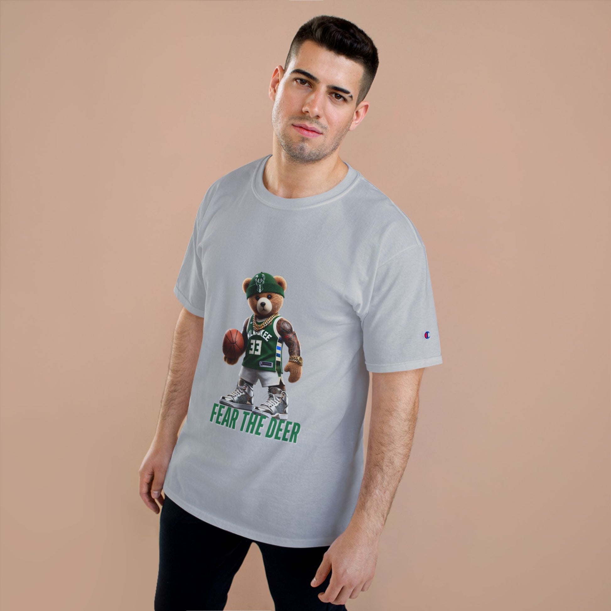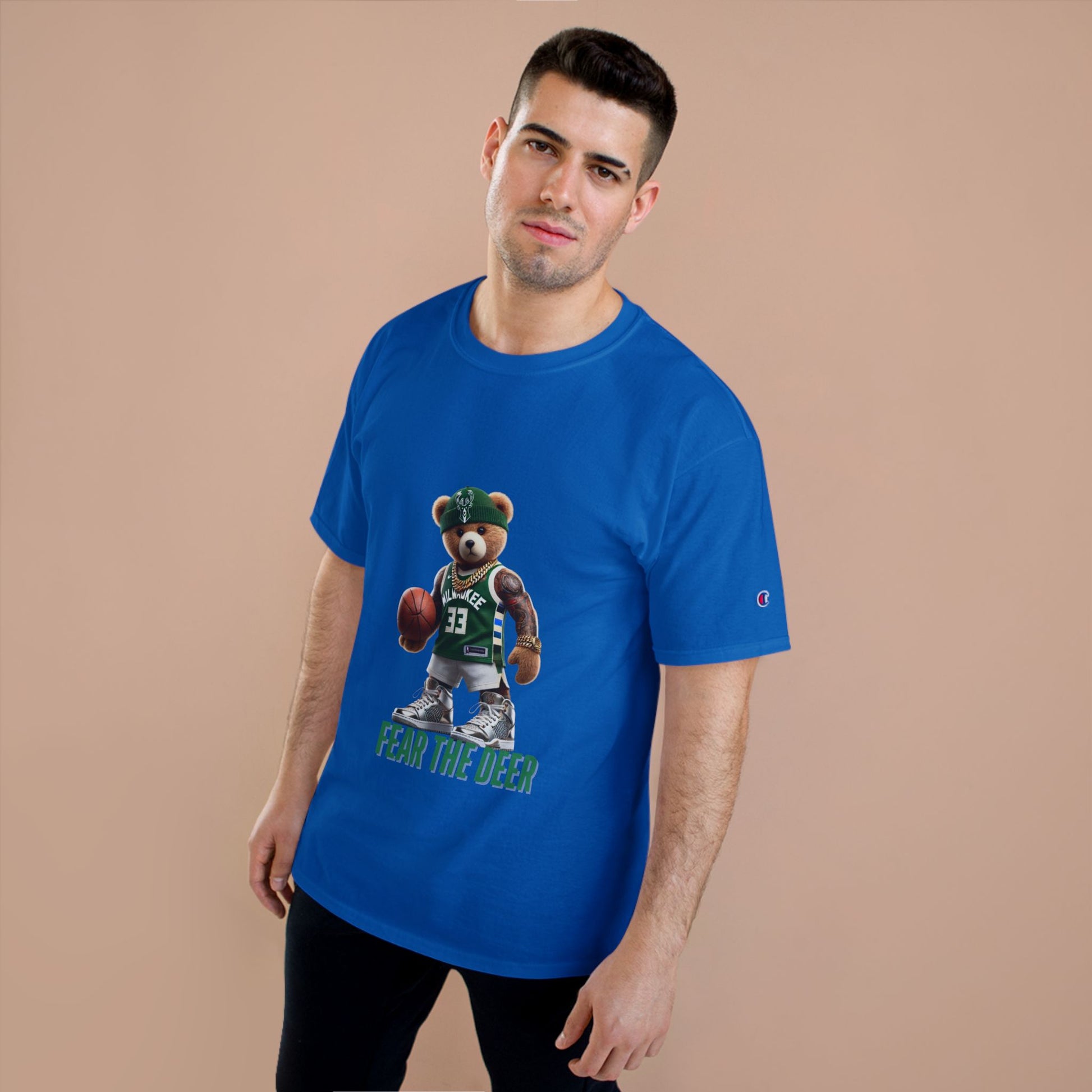 Champion T-Shirt with Fear the Deer Design for Sports Lovers, Gift for Basketball Fans, Casual Wear, Team Spirit Shirt
